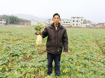 當(dāng)天下午,筆者來到大幕鄉(xiāng)石橋村。當(dāng)?shù)卮迕衽藥煾嫡f,他受雇于湖北淦水農(nóng)業(yè)發(fā)展有限公司,負(fù)責(zé)種植和照看這些蘿卜,播種、施肥的時(shí)候,村里有20多個(gè)貧困戶會(huì)到這里打工。公司請(qǐng)的人都是和他一樣的老人,家庭都比較貧困,有這些脫貧項(xiàng)目,村里的人覺得生活有奔頭。