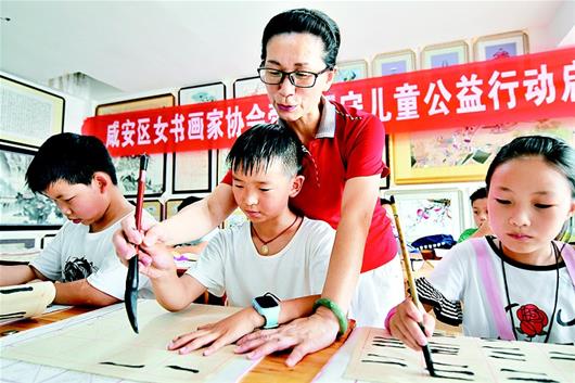 湖北日報(bào)訊 今年暑假,咸寧留守兒童有了新去處,該市一批書道精湛、和藹可親的女書法家免費(fèi)教他們學(xué)習(xí)書法。咸寧市咸安區(qū)女書畫家協(xié)會(huì)去年成立,一直堅(jiān)持周末及寒暑假設(shè)立兩處書法授課點(diǎn),對周邊留守兒童免費(fèi)開放。(記者劉曙松 視界網(wǎng)李旻媛 攝)