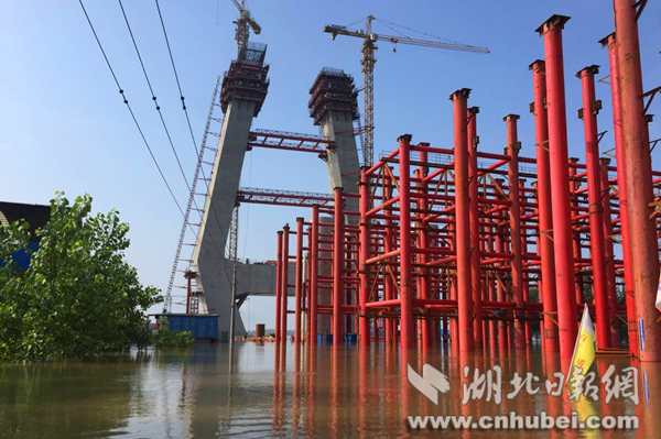 湖北日?qǐng)?bào)網(wǎng)訊(全媒體記者江萌 通訊員周漓)連日來(lái),受湖南持續(xù)暴雨、三峽水庫(kù)加大下泄流量等因素影響,長(zhǎng)江咸寧段水位持續(xù)超警戒,湖北省重大工程嘉魚(yú)長(zhǎng)江大橋項(xiàng)目工地部分區(qū)域被江水淹沒(méi),防汛現(xiàn)場(chǎng)多次出險(xiǎn)。經(jīng)科學(xué)調(diào)度指揮,5日長(zhǎng)江1號(hào)洪峰順利通過(guò)嘉魚(yú)。截至6日晚,大橋南北主塔、橋梁預(yù)制廠及數(shù)百個(gè)墩柱均未出現(xiàn)任何損壞。