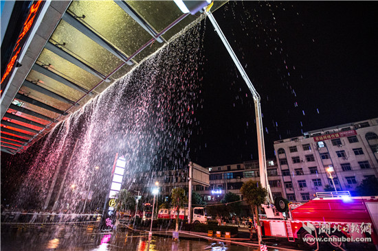 晚8時(shí),通城縣建筑體量最大的城市綜合體——三合中百購(gòu)物廣場(chǎng)內(nèi),燈火通明,熙熙攘攘。忽然,警鈴大作。廣場(chǎng)因電線短路發(fā)生“火災(zāi)”,火勢(shì)迅速蔓延,大量人員被困。警情就是命令。廣場(chǎng)內(nèi)4個(gè)微型消防站立即按照預(yù)案,疏散廣場(chǎng)內(nèi)部人員,并啟動(dòng)固定消防設(shè)施,阻止火勢(shì)蔓延。