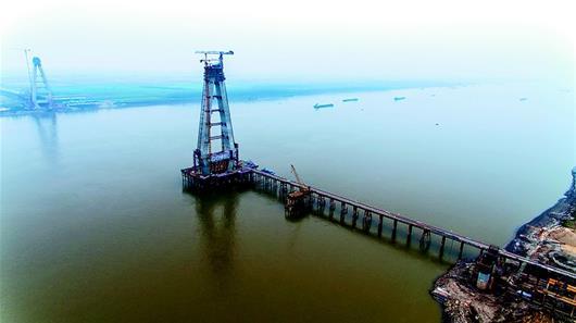 湖北日報訊 12月4日,正在建設(shè)中的嘉魚長江公路大橋南北主塔分別達到164米、158米,相當(dāng)于50多層樓高。大橋建設(shè)者開展勞動競賽,力爭在2018年春節(jié)前完成主塔封頂。咸寧市擁有128公里長江岸線卻沒有一座長江大橋,嘉魚長江公路大橋2019年底建成通車后,將終結(jié)咸寧無長江大橋的歷史。 (湖北日報全媒記者 陳勇 通訊員 周漓 攝)