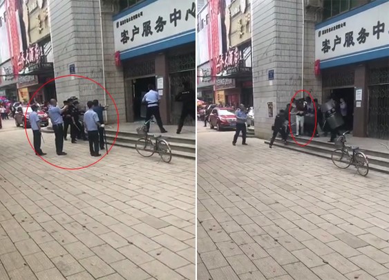 據(jù)現(xiàn)場(chǎng)視頻顯示,多名警務(wù)人員持警械將自來(lái)水公司客戶(hù)服務(wù)中心圍住,現(xiàn)場(chǎng)叫喊聲嘈雜。雙方在對(duì)峙后,一名警察連續(xù)向店內(nèi)射擊3次,隨后其余警務(wù)人員持鋼叉及盾牌上前,經(jīng)短暫搏斗后,將一名男子帶出。嫌疑人被帶出時(shí),依舊能夠站立走動(dòng)。