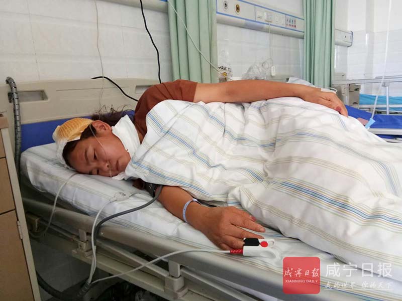 躺在病床上的環(huán)衛(wèi)工人張燕。