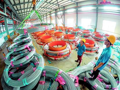 8月10日,在嘉魚經(jīng)濟(jì)開發(fā)區(qū)官橋工業(yè)園內(nèi),湖北歐維姆纜索制品有限公司員工在制造最后一批武漢楊泗港長江大橋的主纜索股。楊泗港長江大橋懸索橋跨度在國內(nèi)排名第一、世界排名第二。每條主纜由271根索股組成,每根索股長度為2836米、重量約62噸,每根索股由91根鋼絲組成,其鋼絲直徑更大、強(qiáng)度更高,在國內(nèi)屬首次應(yīng)用。(湖北日報全媒記者 陳勇通訊員謝燕子攝)