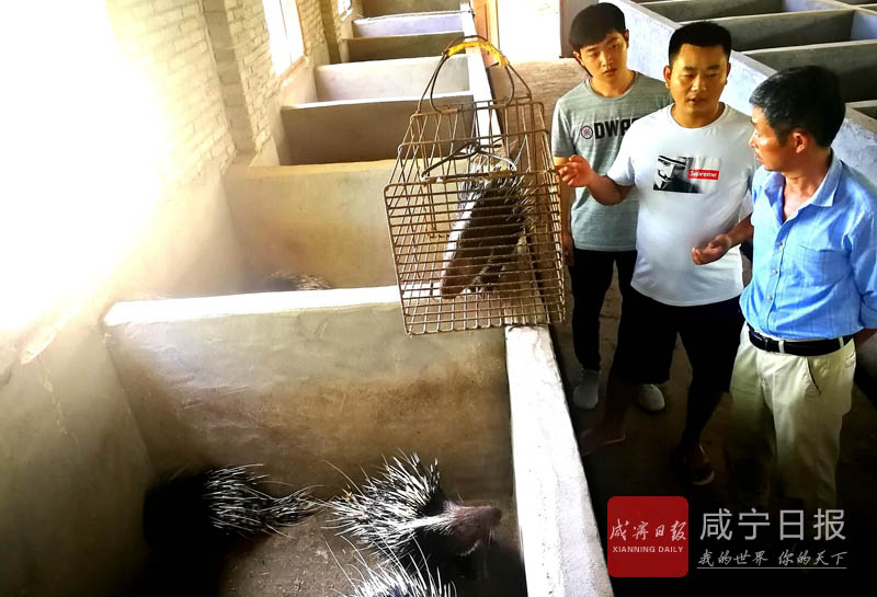21日,通山縣大路鄉(xiāng)東坑村鴻鑰豪豬基地,當?shù)丶夹g員在為貧困戶傳授技術。