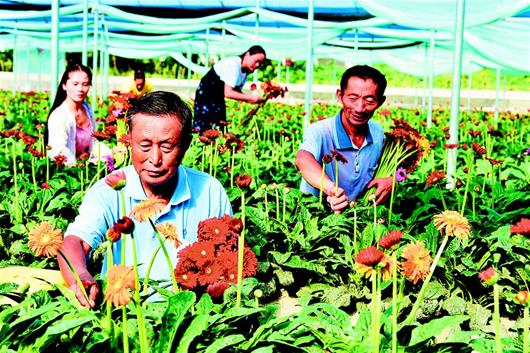 中秋、國(guó)慶雙節(jié)將至,花卉需求量增加。9月20日,通城縣石南鎮(zhèn)賽公村非洲菊種植專業(yè)合作社社員抓緊采摘鮮花供應(yīng)市場(chǎng)。