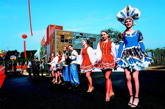 當(dāng)日,經(jīng)過一年多時(shí)間建設(shè)的“萬畝茶園·俄羅斯方塊小鎮(zhèn)”揭開面紗。茶園入口,彩球飛揚(yáng)、人流如織,俄羅斯少女翩翩起舞。走入茶園,齊腰的茶樹漫山遍野、油綠發(fā)亮,異域風(fēng)情的商業(yè)街、喀秋莎會(huì)客廳、四季茶溪花海令人眼前一亮。萬畝茶園原是羊樓洞茶場砂子嶺分場所在地,連片的茶園超過萬畝,主要用于制作青磚茶,是赤壁聞名的旅游地標(biāo)之一。重新規(guī)劃建設(shè)的萬畝茶園,預(yù)計(jì)總投資5.4億元,擺脫原有單一茶業(yè)種植,瞄準(zhǔn)建設(shè)全球首家茶文化俄羅斯風(fēng)情主題公園。