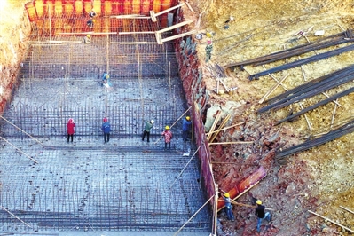 13日,咸安區(qū)向陽(yáng)湖鎮(zhèn)北嶺村,施工人員在進(jìn)行兩湖連通工程護(hù)坡和穿G351國(guó)道箱涵的施工。