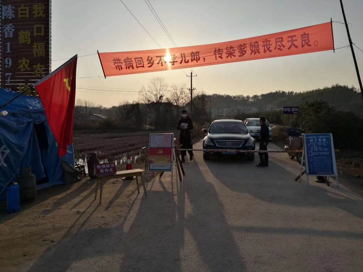 在汀泗橋鎮(zhèn)洪口村一條刷黑村道上,一輛宣傳車(chē)正在不停地滾播咸安區(qū)新冠肺炎防控指揮部公告。