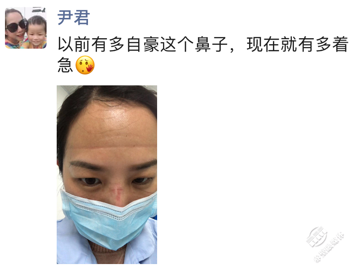 “以前有多自豪這個鼻子,現(xiàn)在就有多著急。”連續(xù)高強度工作,長時間佩戴口罩,將護士尹君的鼻梁勒磨得傷痕累累。短暫的心疼與“著急”后,她又繼續(xù)奔忙在市人民醫(yī)院隔離病區(qū)。