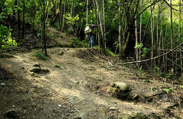 從烈士陵園旁沿著彎彎曲曲的山路,艱難地穿梭在險(xiǎn)峻的山間,探尋曾經(jīng)發(fā)生過(guò)故事的革命之地。經(jīng)過(guò)“百步十八彎”“愛(ài)泉”“云天井”,歷經(jīng)一個(gè)多小時(shí)到達(dá)“虎歇坪”,終見紅艷艷的杜鵑花,開在崎嶇險(xiǎn)路兩旁。