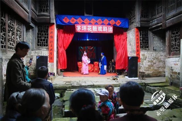 茅坪坐落于葛仙山腳下,在茅坪高屋這個(gè)幾輩人傳下來的大宅子里一支由村民們自發(fā)組建的茅坪花鼓戲劇團(tuán)每周四風(fēng)雨無阻在此排練或演出。