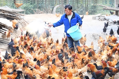 2015年,余達(dá)鑫被列為建檔立卡貧困戶,享受到政策的幫扶。2017年2月,由市政府辦公室等4家單位組成的扶貧工作隊(duì)進(jìn)駐茅井村,工作隊(duì)為余達(dá)鑫申請(qǐng)5萬元無息貸款,現(xiàn)在他一年養(yǎng)雞的純收入達(dá)10余萬元。