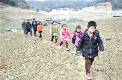 該教學(xué)點(diǎn)一面傍山、三面環(huán)水。從縣城出發(fā),沿著蜿蜒起伏的公路,驅(qū)車(chē)需要五十分鐘。這條路去年才修好通車(chē)。此前到該教學(xué)點(diǎn),需從青山水庫(kù)壩區(qū)上船,路上要折騰兩三個(gè)小時(shí)。