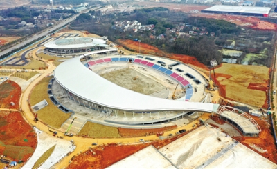 1月19日,赤壁市體育中心建設(shè)現(xiàn)場,只見場館主體結(jié)構(gòu)已完成,工人們正在進(jìn)行精裝修施工,停車場建設(shè)已基本完成,場館外的空地已開始綠化作業(yè)。