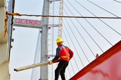 “今年春節(jié)因為趕工期和疫情防控,我還是選擇在工地過年。”2月13日,大年初二,記者走進赤壁長江公路大橋建設現(xiàn)場,30出頭的尹振君正和同事研究合龍技術方案,他已經(jīng)連續(xù)4年沒回家過年了。他們身后,大橋合龍僅剩最后的40米。