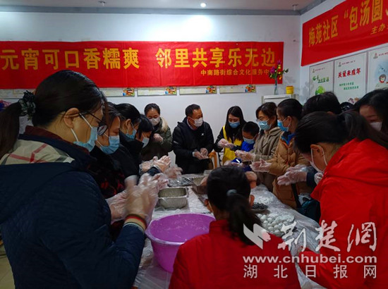 “在社區(qū)為困難群眾包了湯圓,這個元宵節(jié)過得真有意義!”來自應(yīng)急廳的下沉黨員龔愛榮感嘆道。今年元宵節(jié),梅苑社區(qū)協(xié)同下沉單位湖北省應(yīng)急廳、中建三局物業(yè)以及社區(qū)養(yǎng)老服務(wù)中心接連兩天舉辦兩場慶元宵活動,借民俗文化的風(fēng),將深情暖意吹拂到了每一個人的心中。