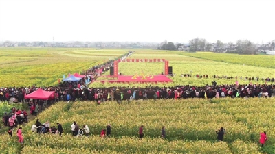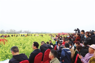 精彩的文藝演出、極具地方風(fēng)情的民俗表演和國家非物質(zhì)文化遺產(chǎn)提琴戲演唱,與花海交相輝映,為前來觀賞的人們帶來了絕美的視覺盛宴。開幕活動(dòng)結(jié)束后,開始游玩賞景,游客們或全家出動(dòng),或情侶相攜,或友人相伴,邊感嘆油菜花的美,邊呼朋引伴一起拍照留念,人花相映襯,美不勝收。除了賞花,大家還紛紛品嘗特色美食,購買當(dāng)?shù)靥厣r(nóng)產(chǎn)品。