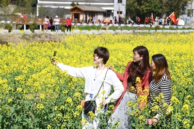 吳秀琴是曾鋪村十組村民,一家人正商量如何接待游玩的游客,而她家正好在花海景點(diǎn)的入口處。“去年我家的4畝油菜產(chǎn)了1200斤左右的菜籽,賺了一萬多元?!眳切闱俑吲d地說:“今年準(zhǔn)備開農(nóng)家樂,再賣點(diǎn)臘魚臘肉,多掙點(diǎn)錢!”在賞花的過程中,附近的農(nóng)家樂生意也非?;鸨?,很多村民在景點(diǎn)處擺攤賣起了自家的農(nóng)產(chǎn)品,使游客盡興而來,滿載而歸。