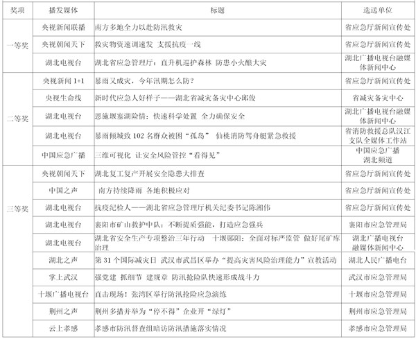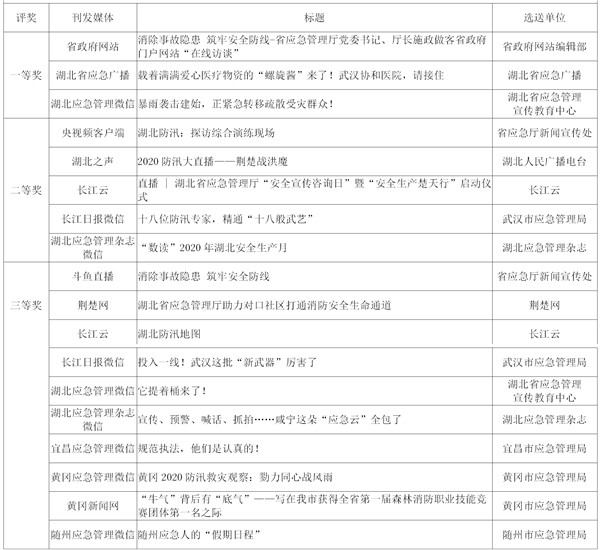 2020年,湖北應(yīng)急人牢記初心使命、踐行訓(xùn)詞精神,圍繞安全生產(chǎn)、防災(zāi)減災(zāi)救災(zāi)、應(yīng)急救援三大主責(zé)主業(yè),經(jīng)歷戰(zhàn)疫、戰(zhàn)洪、戰(zhàn)貧三場大考,打贏防范化解重大安全風(fēng)險攻堅戰(zhàn),向全國、全省人民展現(xiàn)了不懼艱險、逆向而行的應(yīng)急鐵軍風(fēng)采,諸多工作成果受到媒體廣泛關(guān)注。來自各級各媒體記者、應(yīng)急管理戰(zhàn)線的通訊員,精心撰寫、拍攝、制作了一大批形式豐富、內(nèi)容精彩精品力作,深入宣傳我省應(yīng)急管理改革發(fā)展成效。經(jīng)評審委員會評審,69部(篇)“好新聞作品”從報送的上千條作品中脫穎而出,分獲文字、廣播電視、攝影、新媒體四大類一、二、三等獎,現(xiàn)將獲獎作品予以發(fā)布。