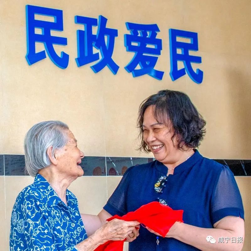 “得共產(chǎn)黨的力,才有今天的好生活。感謝毛主席!感謝共產(chǎn)黨!”6月15日下午,家住咸安區(qū)文筆路社區(qū)的百歲老人毛保玉在家人的陪同下,給區(qū)民政局送去一面親手縫制的黨旗。