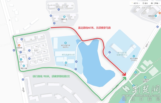 這條路位于咸寧市城區(qū),是一條連接銀桂路和十六潭路的城市支路,于2021年3月建成通車(chē),被命名為鏡湖路?!剁R湖路微循環(huán)工程公示牌》顯示,“本次規(guī)劃道路起點(diǎn)位于銀桂路,終點(diǎn)位于鏡湖路,規(guī)劃全長(zhǎng)358.46米,設(shè)計(jì)車(chē)速20千米/小時(shí),為城市支路。該路建成增加了馨園小區(qū)357戶居民車(chē)流集散通道,車(chē)輛進(jìn)入十六潭路的距離大大縮小,極大方面了居民出行;同時(shí)分流了繞行銀桂路車(chē)流,有效緩解了銀桂路交通壓力。