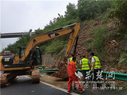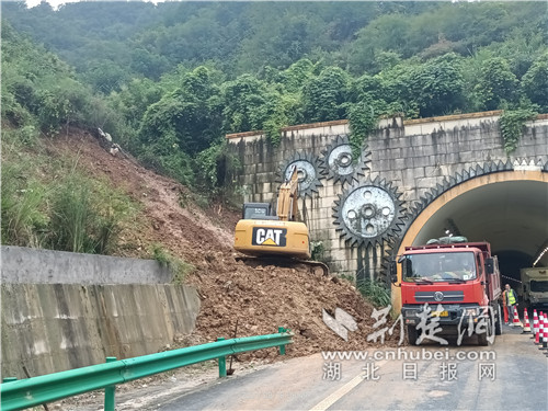 險情發(fā)生后,湖北交投鄂西北高速公路運營管理有限公司第四綜合巡檢辦立即啟動搶險應急預案,經(jīng)過與轄區(qū)高警、路政協(xié)商確定后,將原本因跨線橋施工封閉的行車道改為封閉超車道,確??焖偾謇砺访嫔呈陀倌?。該公司第四綜合巡檢辦迅速抽調(diào)10名人員組成搶險突擊隊,攜帶2臺挖掘機、2臺運輸車和相關(guān)搶險設備,緊急上路擺放安全警示標志和勘察險情、確定搶險方案等工作。經(jīng)過全員的共同努力,共清除塌方270立方米,道路及時恢復了正常通行。