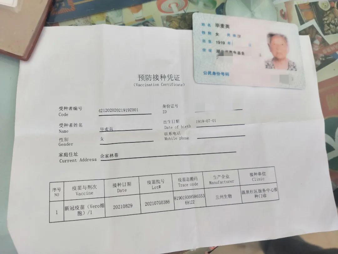 8月29日,居住在咸安區(qū)溫泉街道桂花路社區(qū)的百歲老人畢麥英,在溫泉衛(wèi)生服務(wù)中心新冠疫苗接種點接種第一劑次新冠疫苗,她是咸寧市目前最年長的新冠疫苗接種者。