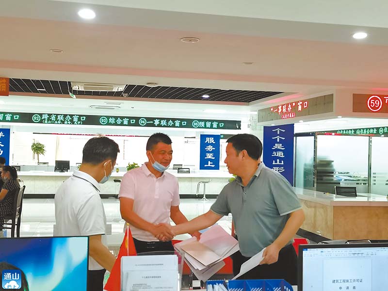 “1個(gè)地塊5個(gè)證,一共25個(gè)證,沒(méi)想到一天就能拿到手!”9月30日下午,在通山縣政務(wù)服務(wù)中心工程建設(shè)項(xiàng)目綜合審批窗口,通山縣興達(dá)鞋業(yè)有限公司經(jīng)理程宏兵從縣住建局局長(zhǎng)手中接過(guò)厚厚的一摞證,意味著通山縣興達(dá)鞋業(yè)有限公司在通山的地塊達(dá)到開(kāi)工條件。