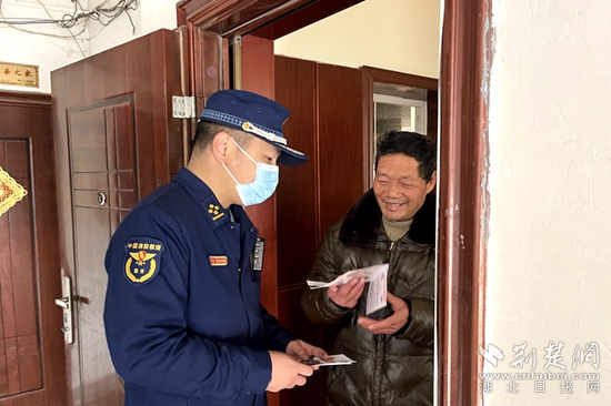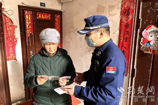 荊楚網(wǎng)(湖北日報(bào)網(wǎng))訊(通訊員程瑩)“劉奶奶,家里的陽臺(tái)不能亂放雜物,要注意清陽臺(tái)、清樓道。”“李爹爹,這是家庭防火指南,您可以看看,學(xué)習(xí)消防安全知識(shí)”......2月14日,黃石市下陸區(qū)消防救援大隊(duì)走進(jìn)華盛小區(qū)開展敲門入戶送“平安”活動(dòng)。
