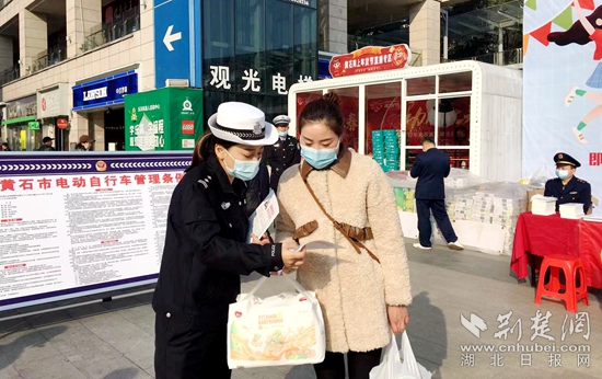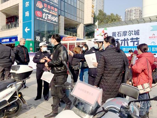 荊楚網(wǎng)(湖北日?qǐng)?bào)網(wǎng))訊(通訊員胡賢鋒 李卓)“注意了,白底紅字臨時(shí)牌照的電動(dòng)自行車,2025年3月1日起不得上道路行駛?!?月26日,圍繞即將施行的《黃石市電動(dòng)自行車管理?xiàng)l例》,一場內(nèi)容豐富的宣傳活動(dòng)在黃石摩爾城廣場舉行。