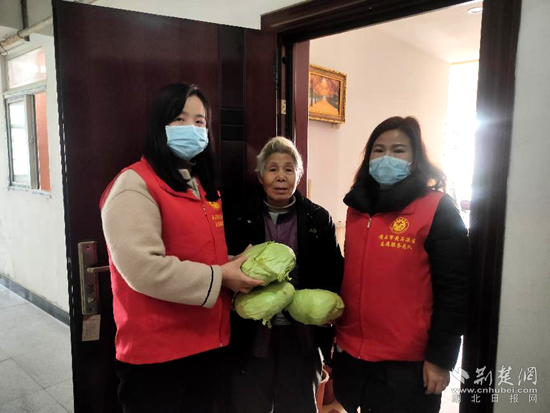 隨后,志愿者們分組與黃石愛心滿園的義工將愛心人士捐贈(zèng)的愛心包菜贈(zèng)送給轄區(qū)內(nèi)50余戶獨(dú)居、困境老人,了解老人們近期身體狀況,讓老人們感受到新時(shí)代文明社會(huì)的關(guān)心關(guān)愛。