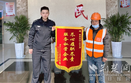 彭先生將錦旗送到黃石市公安局西塞山分局河口派出所。通訊員供圖