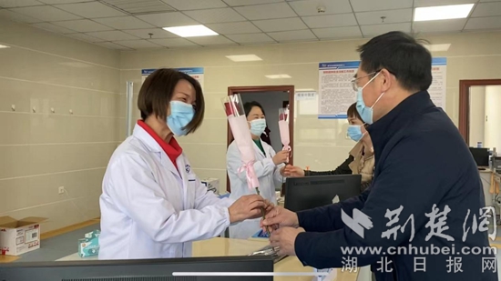 活動前,黃岡市疾控中心領(lǐng)導(dǎo)班子及工會為仍在崗堅守的女職工們獻(xiàn)上了鮮花,為她們送去節(jié)日的問候和祝福。