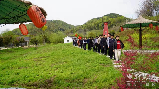 在希爾寨生態(tài)農(nóng)莊,大家饒有興致地觀看了獨(dú)具匠心的“同心林·石榴園”,正逢春天,草木蔓發(fā),生機(jī)盎然,此時(shí)的希爾寨生態(tài)農(nóng)莊儼然成為一片花的海洋,櫻花、桃花、紫荊花、海棠花、玉蘭花爭奇斗艷,競相開放,更有戀橋的別致、涵山堂的典雅、桃花島的悠然、九間堂的飄逸……自然景觀和人文景觀有機(jī)地融合在一起,別有一番韻味。人群中,頓時(shí)傳來了一句響亮的口號(hào):花團(tuán)錦簇希爾寨、同心同行向未來!