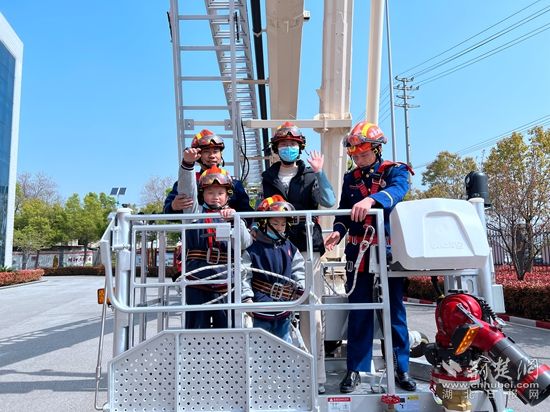 在開發(fā)區(qū)·鐵山區(qū)百花路消防救援站,消防員向前來參觀學(xué)習(xí)的師生介紹了水罐消防車、搶險救援車、泡沫消防車、登高平臺車和隨車器械裝備,介紹了各種消防器材的功能和適用的救援類型,講解示范了常用消防器材裝備,并邀請學(xué)生親身體驗乘坐登高車逃生。