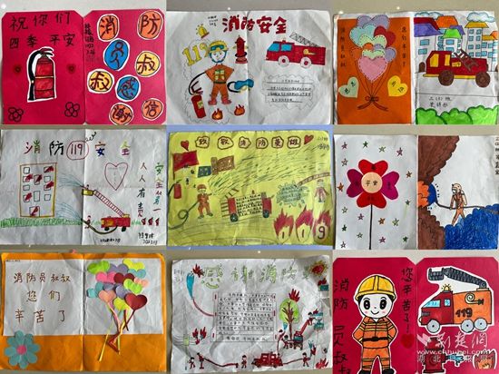 參觀結(jié)束后,可愛的孩子們?yōu)橄绬T帶來了精心準(zhǔn)備的手寫賀卡、繪畫作品等特殊禮物,消防員叔叔們瞬間都被暖到了,整個營區(qū)沉浸在一片歡快的氛圍中。