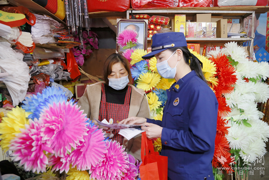 隨后,消防人員走進(jìn)轄區(qū)廣場(chǎng)活動(dòng)中心向來(lái)往群眾發(fā)放消防宣傳資料,講解祭祀防火安全注意事項(xiàng)、以及日常發(fā)生火災(zāi)的應(yīng)對(duì)措施等消防安全知識(shí),并結(jié)合當(dāng)前疫情形勢(shì)嚴(yán)峻,提倡廣大群眾選擇鮮花、植樹(shù)、網(wǎng)上祭奠等安全、環(huán)保的方式寄托哀思、祭奠先人,確保清明節(jié)期間防火、防疫安全。