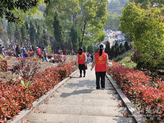為此,一方面,志愿者們?cè)阪i泉公墓嚴(yán)守大門,前往公墓祭祀人員都測(cè)體溫、查看行程碼、健康碼;另一方面,志愿者們攜帶小喇叭在公墓內(nèi)加強(qiáng)巡邏,循環(huán)宣傳戴好口罩和森林防火,嚴(yán)禁燃放煙花爆竹等相關(guān)知識(shí)。