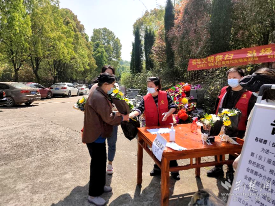 當(dāng)天,鎖前社區(qū)新時(shí)代文明實(shí)踐站自籌資金購買鮮花,供居民免費(fèi)兌換,引導(dǎo)廣大居民群眾移風(fēng)易俗,鼓勵(lì)通過敬獻(xiàn)鮮花、栽植苗木等文明環(huán)保的祭祀方式來祭奠逝者。