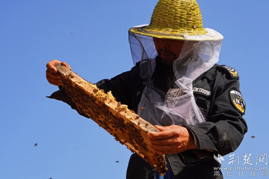 “村集體經(jīng)濟選擇養(yǎng)蜂事業(yè),是經(jīng)過反復考察,慎重選擇的。風橋村沒有工業(yè)污染,是大冶市‘省生態(tài)保育村’,而且村莊附近有槐花蜜、荊條蜜、五味子蜜等三大傳統(tǒng)蜜源?!奔o建剛說。