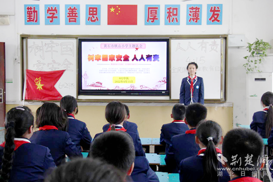 在此背景下,黃石開(kāi)發(fā)區(qū)·鐵山區(qū)各中小學(xué)開(kāi)展了“全民國(guó)家安全教育日”宣傳系列活動(dòng)。學(xué)校通過(guò)LED顯示屏和班級(jí)牌播放國(guó)家安全標(biāo)語(yǔ)、主題海報(bào),紅領(lǐng)巾廣播站宣傳國(guó)家安全教育知識(shí),召開(kāi)形式多樣的安全教育主題班會(huì)、制作手抄報(bào)等一系列內(nèi)容豐富、形式多樣的活動(dòng)。