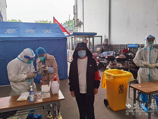 “在家里坐著也沒事做,不妨出來貢獻(xiàn)一份力量?!比~飛說道。4月17日,鄂城區(qū)實(shí)行第四輪全員核酸,早上7點(diǎn)鐘,葉飛和肖運(yùn)琴就做好防護(hù),準(zhǔn)備前往各自的包??c(diǎn),維持核酸檢測(cè)的紀(jì)律。