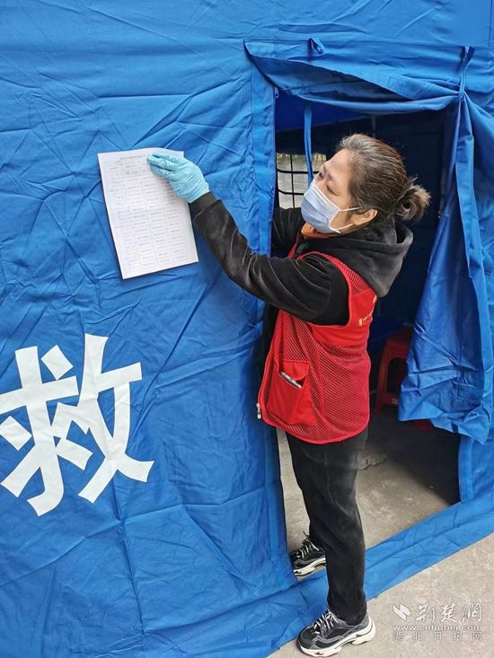 白天,她既是“守門人”也是“服務員”,還是情緒“開導員”。協(xié)助醫(yī)護人員給封控樓棟住戶做核酸是她每天工作中的重中之重。核酸檢測結(jié)束,她第一時間做好消殺工作,處理醫(yī)療衛(wèi)生垃圾。為了能夠隨時上“疫”線,她主動打包隨身物品,7天24小時吃住值班室。