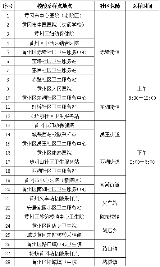 附:黃州區(qū)調(diào)整后的核酸檢測采樣點(diǎn)