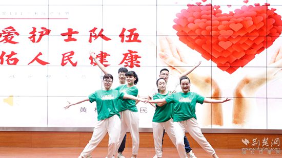 護(hù)理部白衣天使們表演節(jié)目《飛舞的雙翅》。通訊員 供圖