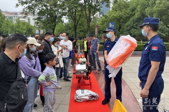 在器材裝備展示區(qū),消防員講解示范了消防特種器材及攻堅技巧,吸引廣大市民駐足觀看,并參與互動。