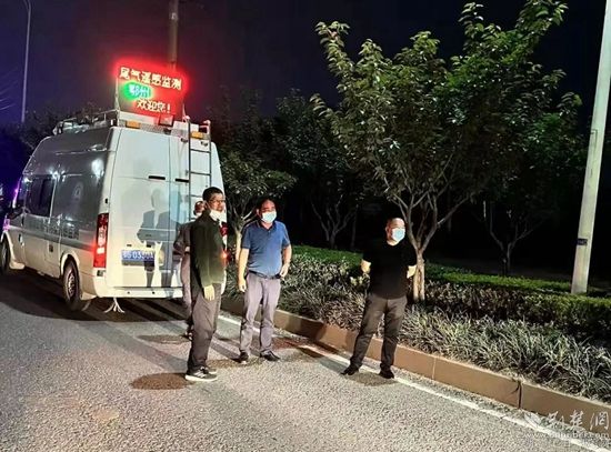 對夜間作業(yè)重型貨車排氣污染進(jìn)行檢查。通訊員 供圖