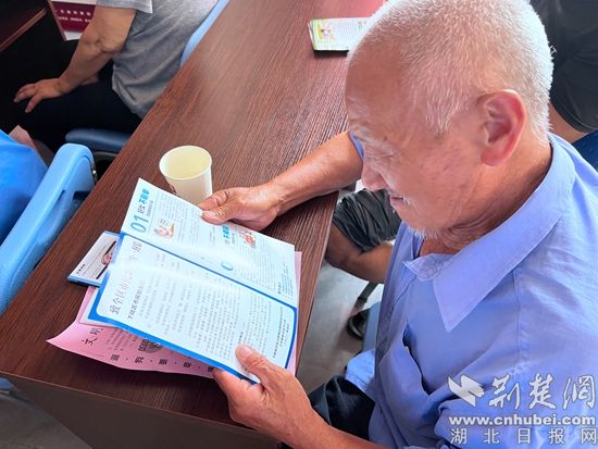 老人認(rèn)真看反詐宣傳手冊。通訊員 供圖