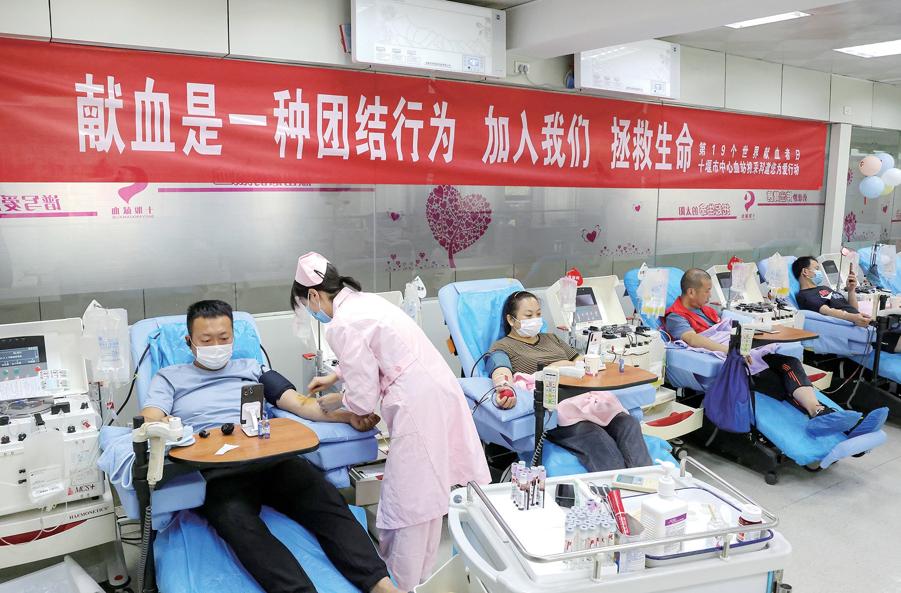 十堰市中心血站自成立以來(lái),始終把血液質(zhì)量放在首位,充分調(diào)動(dòng)一切社會(huì)資源,不斷擴(kuò)大無(wú)償獻(xiàn)血的輻射力和影響力,實(shí)現(xiàn)了無(wú)償獻(xiàn)血工作健康、有序、高質(zhì)量發(fā)展,切實(shí)保障了全市臨床血液供應(yīng)。2021年,全市共有5萬(wàn)人次參與無(wú)償獻(xiàn)血,年采血量達(dá)18.53噸,創(chuàng)歷史最高,千人口獻(xiàn)血率達(dá)到了15.58‰,遠(yuǎn)超全國(guó)(11.4‰)平均水平。